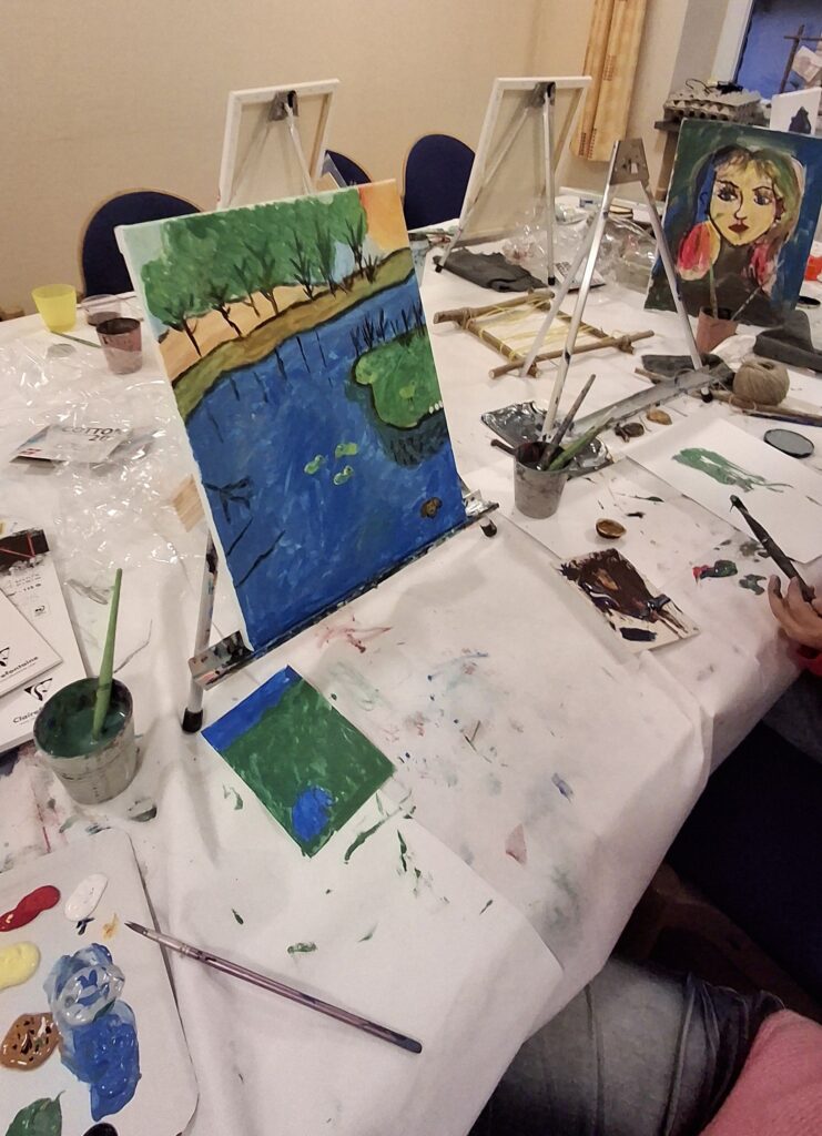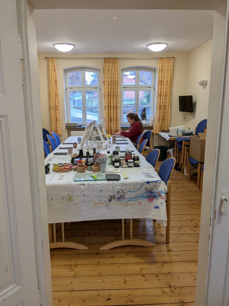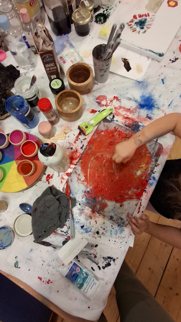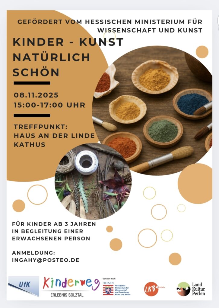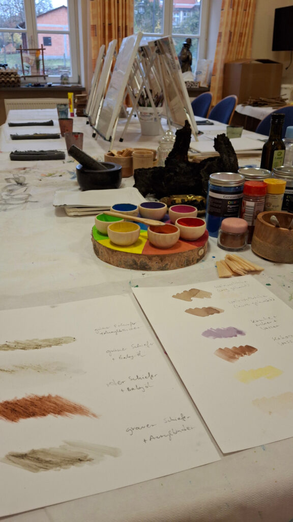 Bei einem zweiten Besuch im schönen Solztal haben wir gemeinsam Farben aus Naturmaterialien hergestellt. Die Kinder durften mörsern, mischen, mantschen und mit den daraus entstandenen Farben eigene Kunstwerke gestalten. Ein tolles Projekt, das seitdem regelmäßig im Dorfgemeinschaftshaus in Kathus ehrenamtlich und kostenfrei weitergeführt wird.